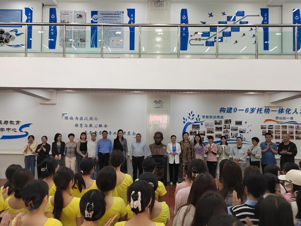 67日上午,陈鹤琴雕像揭幕仪式在学前教育实训中心大厅举行,伟德国际VICTOR1946师生二百多人参加了揭幕仪式。