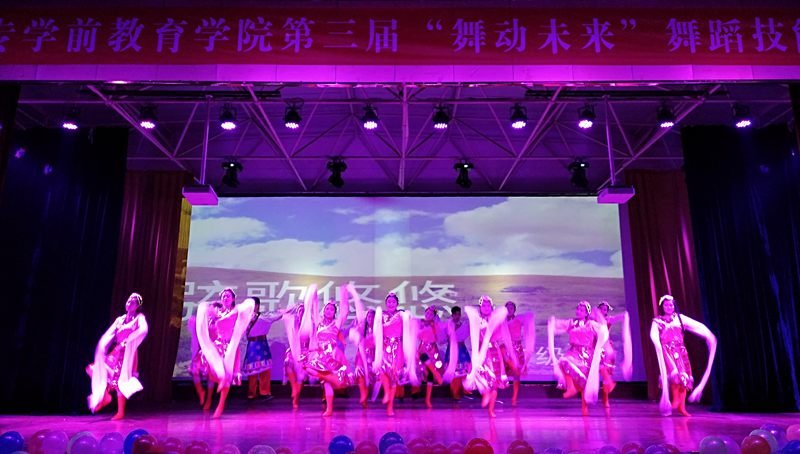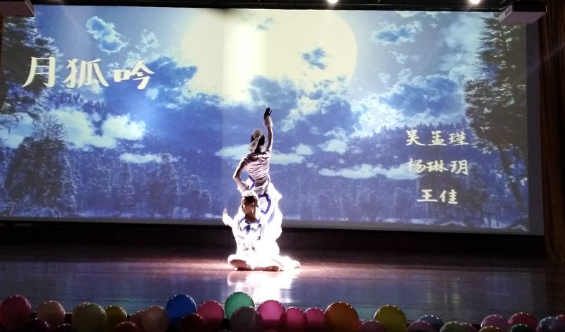 晚七点半,活动正式拉开序幕,随着聚光灯的亮起,由杨琳玥、王佳等同学带来的原创舞蹈《童心爱你》瞬间惊艳全场。观众掌声不断,将晚会推向第一个高潮。接着,活动精彩继续,舞蹈《梦想的列车》、《冰菊物语》、《月狐吟》、《雪莲》、《音符跳起来》、《竹林深处》、《咏荷》、《踩影子》、《花间梦》等一系列舞蹈引起了观众的阵阵掌声。独舞《踩影子》以轻盈的脚步,矫健的身姿,似深水莲花,立在水中,沁人心脾。吉他弹唱《斑马》《古楼》等歌曲把每位同学的记忆都带回到了自己的青春岁月。由音乐与舞蹈公司班杰带来的《雪域男儿》更是引起在场观众的共鸣,将活动推向又一个高潮。