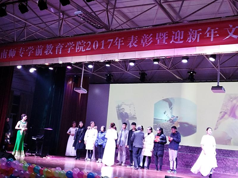 此外,还有我们特邀的天水师院在读研究生靳飞带来的笛子独奏,笛声悠扬而起,清脆与柔和相应,委婉与清亮并存,婉如天籁,怡人心脾。在一片掌声中由嘉宾老师对我们公司的特色活动玩教具大赛的获奖选手以及创新创业之星,优秀报道员进行了颁奖,并鼓励他们再接再厉。接下来由三个男生带来的舞蹈《源》将我们的晚会拉入了高潮,他们刚劲有力,洒脱自然的舞姿赢得了全场观众热烈的掌声。武江丽老师带来的歌曲《我爱你中国》唱出了对祖国浓厚的感情。在这一学期中我们公司共举办了四十几次活动,每一次的团学活动中都取得了优异成绩。在这些成果的背后离不开兢兢业业的指导教师与组织者,也离不开那些默默付出的管理干部与同学,他们是老师最得力的助手,为了对他们的付出给予肯定,也对他们进行了颁奖鼓励,希望他们继续努力,再创辉煌。最后,在学前合唱团带来的精彩演唱声和同学们热烈的掌声中晚会完美落幕。