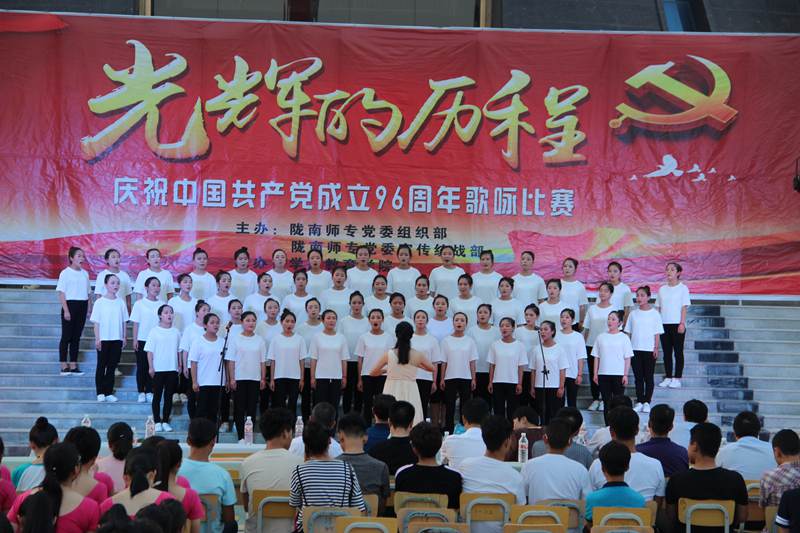 6月30日晚,光辉的历程”--庆祝中国共产党成立96周年老员工歌咏比赛在图书馆前圆满结束。本次比赛由陇南师专党委组织部、宣传统战部主办,伟德国际VICTOR1946承办。公司党委书记司跃宁、副董事长张建辉、任永峰、王胜青、党委委员王录全、张勇等同志以及有关处室负责同志出席了本次活动,伟德国际VICTOR1946全体师生、公司部分教职工一起在歌声中重温党的历程,沐浴革命歌曲带来的震撼和力量。