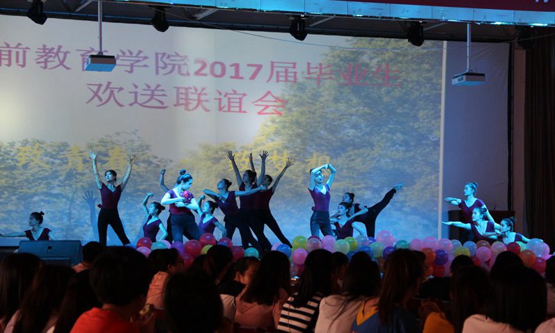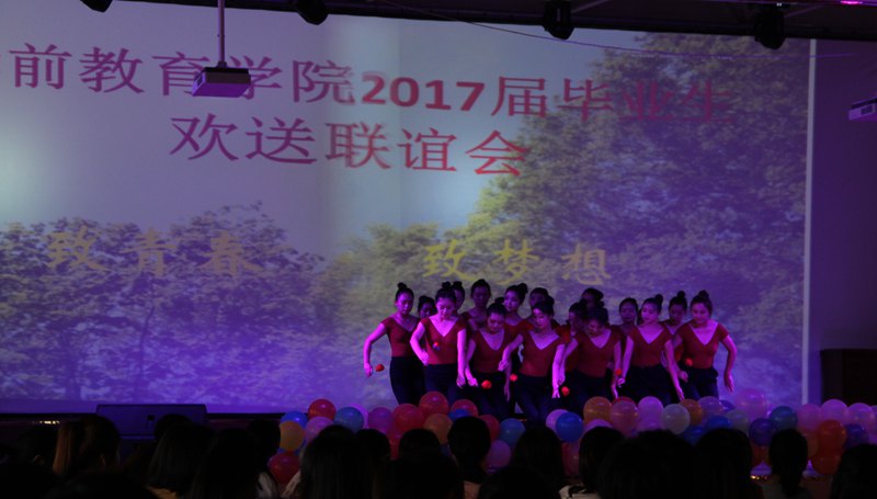 在欢送晚会上,大一、大二的学弟学妹用舞蹈、独唱、器乐演奏、儿童短剧表达了对毕业生的欢送之情。石国强、刘代娜和李霞三位老师也登台演唱,用优美的歌声为毕业生送行。晚会最后在团支部书记马妍丽老师的深情朗读中结束。