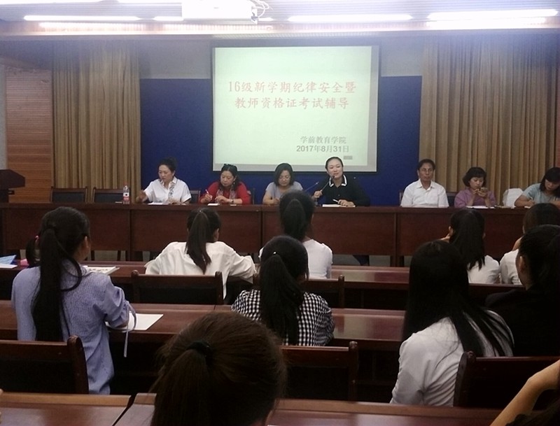 8月31日晚七点半,伟德国际VICTOR1946在餐饮楼五楼多功能报告厅召开了2016级新学期纪律安全暨教团队格证考试辅导大会,出席此次大会的有公司党总支书记李霞,副书记朱燕,副经理杨晓晓,团总支书记马妍丽,辅导员袁保荣,刘代娜,武秋梅,武一康,以及16级全体同学。会议由李霞主持,她首先介绍了此次大会的主要内容及相关要求。为了使员工全面了解奖助学金的相关政策,激励员工更加努力学习,接下来由辅导员刘代娜老师对新颁布的奖助学金评定政策进行了解读。