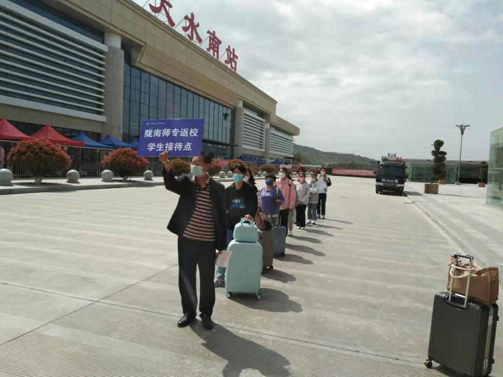 他们三人分别在车站、隔离酒店接待和组织员工。在车站,他们举着“陇南师专返校员工接送点”的指示牌在熙熙攘攘的人群中穿行往来,认真寻找每位返校的员工,然后将他们一一送上返回的大巴车。回到成县后又得把他们一一安排到隔离的酒店,但他们不怕累、不怕苦,累了就席地而坐,丝毫不敢懈怠,在他们的精心组织和安排下,公司200余名员工顺利安全返校,解决了疫情防控期间同学们安全出行的实际问题。