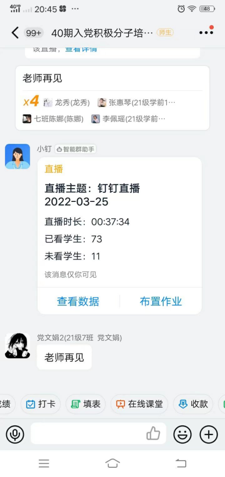 为深入学习习近平新时代中国特色社会主义思想和党的波澜壮阔的历史,进一步加强入党积极分子的教育和培养。2022年3月24日至4月8日,伟德国际VICTOR1946员工党支部在线上举行第40期入党积极分子培训。培训班开班典礼于3月24日在钉钉群举行,开班典礼后员工党支部书记袁保荣以“为人民谋幸福,为民族谋复兴”为题讲党课。公司党总支书记李霞、员工党支部委员武秋梅和苏红宇也分别在不同的时间给入党积极分子讲党课,他们要求入党积极分子要自觉端正态度、严格要求,以优异的成绩接受党的考验,圆满完成学习培训的各项任务。