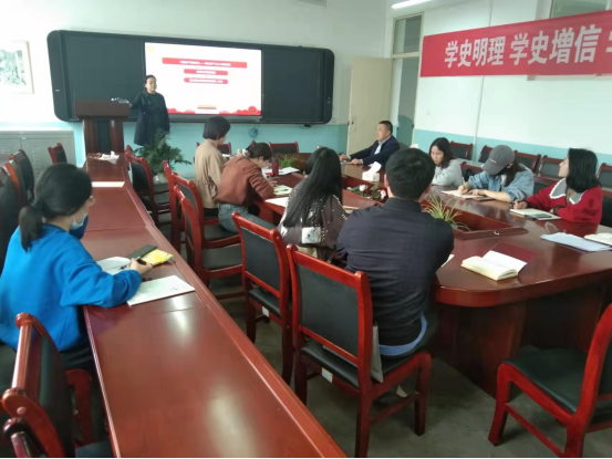 4月8日,学前教育公司党总支书记李霞在公司会议室以“学习党史 增强党性”为主题给全体教师党员讲了一节生动的党课。