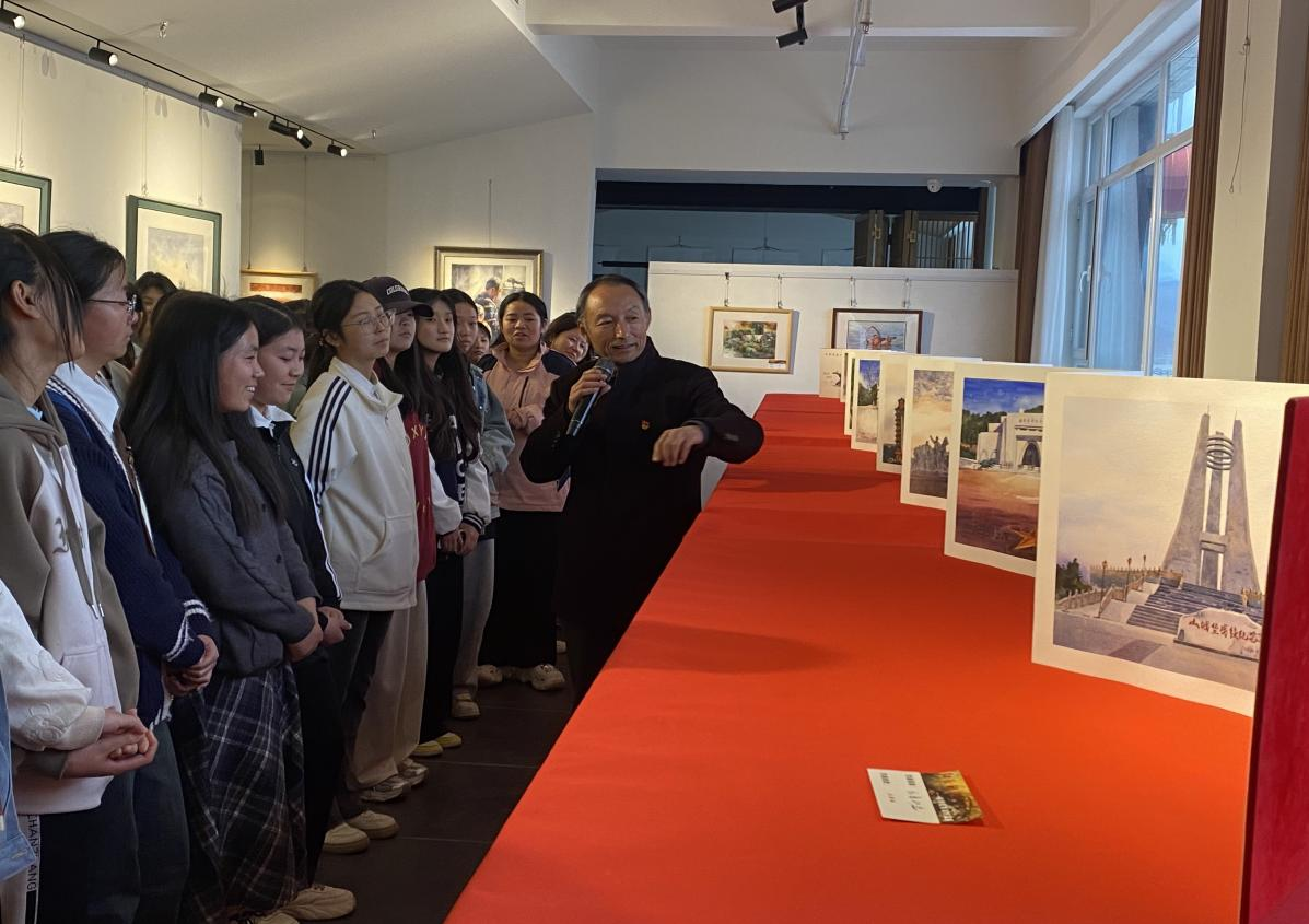 为扎实推进党史学习教育常态化长效化,深挖红色资源育人功能,3月14日,伟德国际VICTOR1946创新思政教育形式,组织70余名师生走进张永权"红色印记"主题美术展,在艺术殿堂中开启红色寻根之旅。展览以百年党史为经纬,通过油画、水彩画等多元艺术形式再现陇原大地上的红色记忆。张永权教授以艺术创作者和教育者的双重身份,重点解说了“红色印记”系列作品。在《五龙山战役》巨幅油画前,张教授通过笔触解析、色彩解码,将师生带入红军浴血奋战的壮烈场景。